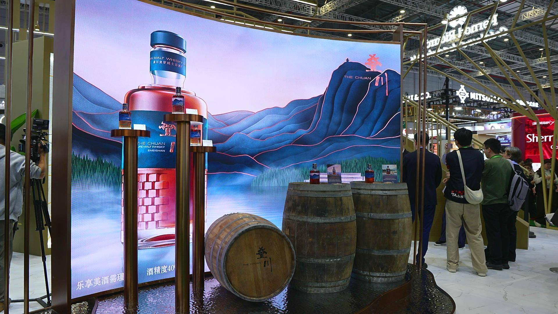 国际知名烈酒集团将首款中国原产威士忌叠川放在了展台“C位”。受访者供图保乐力加今年的展台“C位”留给了首款中国原产威士忌叠川。位于四川峨眉山的叠川麦芽威士忌酒厂是第一个由国际洋酒集团在中国投资建造的麦芽威士忌酒厂,保乐力加计划在十年间为叠川酒厂投资10亿元人民币。